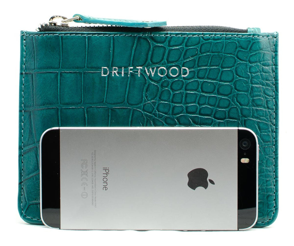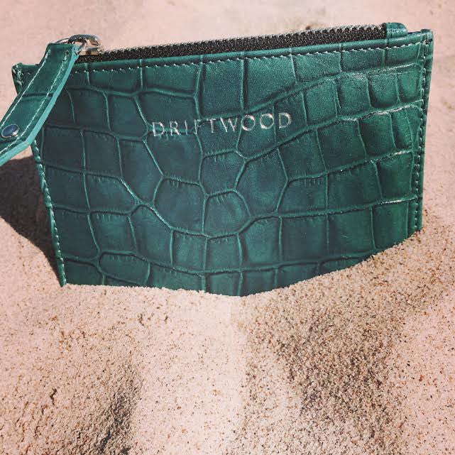 Crocodile Print 100% gorgeous leather, rounded corners with embossed driftwood logo