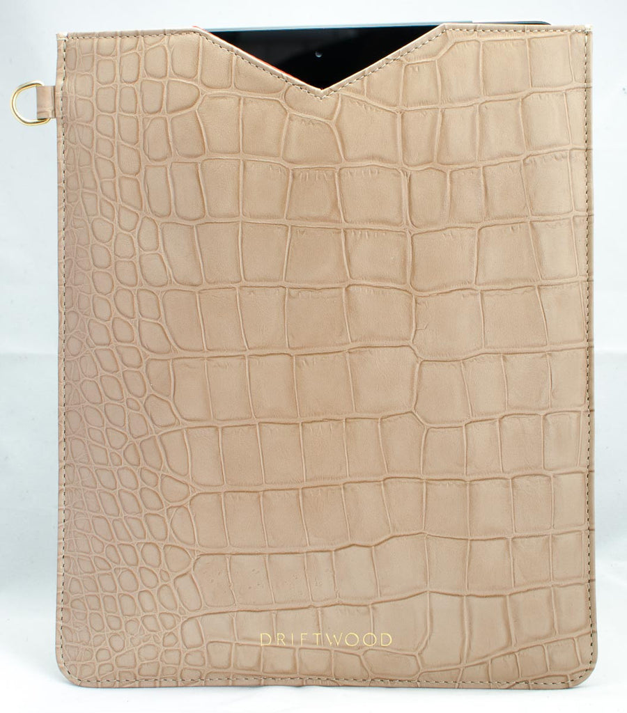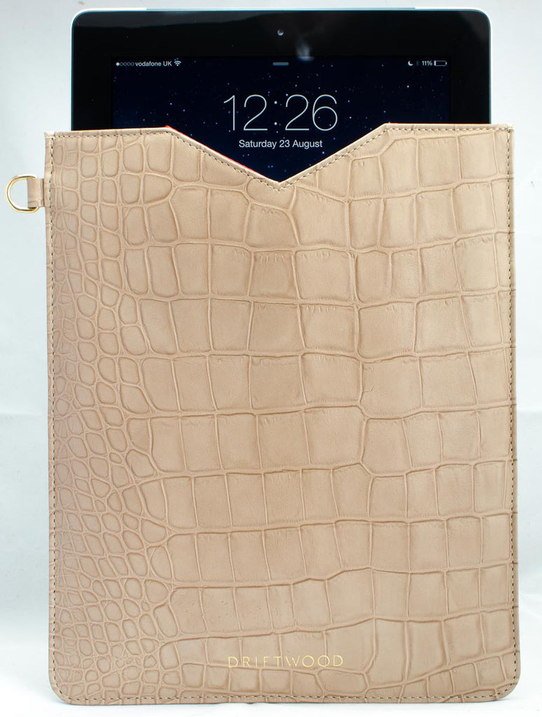 Cairns iPad Sleeve in Crocodile Print Leather- Sand