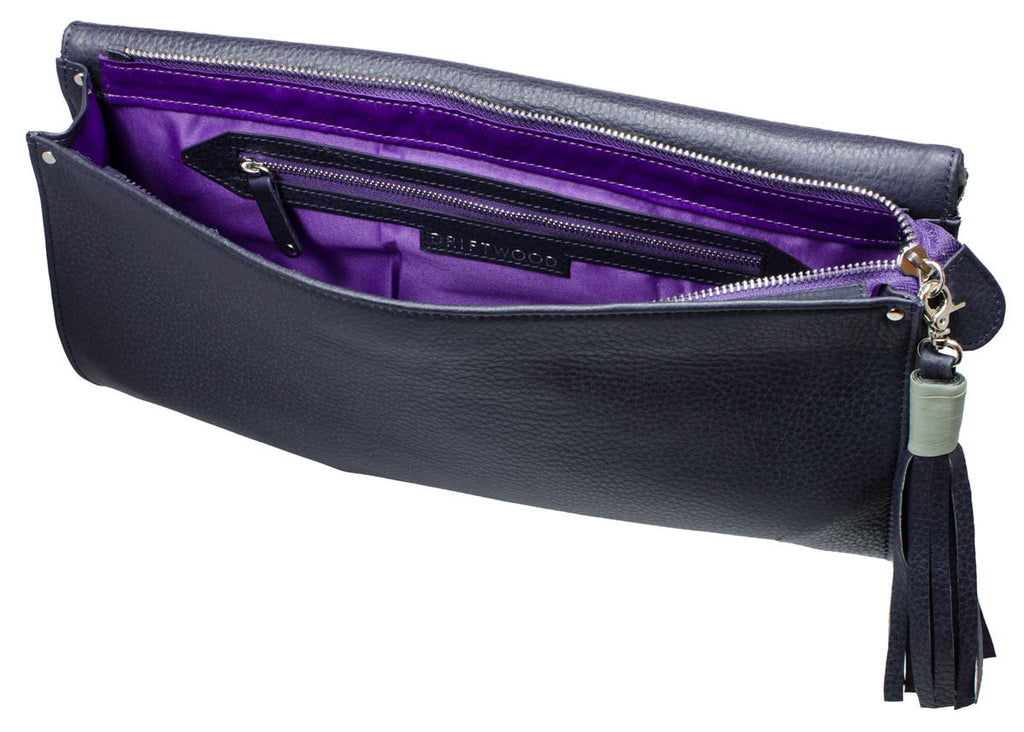 Raglan Fringe Colourblock Clutch in Navy & Gray